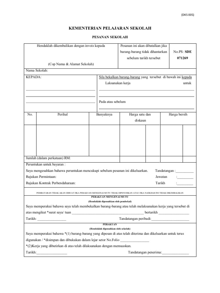 Dks005 pesanan sekolah pdf document. Borang pesanan sekolah lampiran berasingan boleh digunakan dengan diperakukan oleh pengurus sekolah. Contoh Surat Pesanan Barang Bentuk Lurus Penuh Surat 8.
