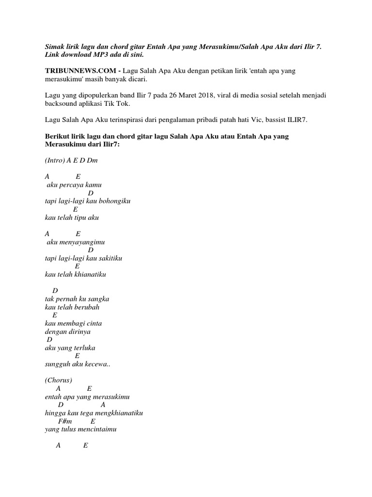 Chord Dan Lirik Lagu Entah Apa Yang Merasukimu Download Mp4 Salah Apa Aku Versi Via Vallen Tribunkaltim Co